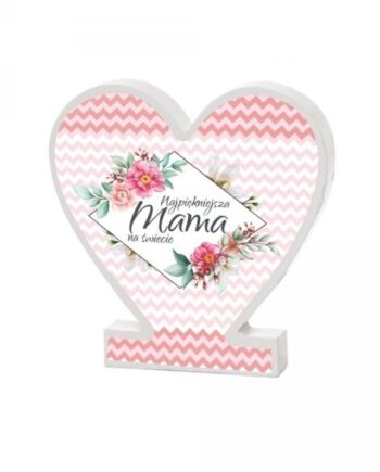 • Drewniana tabliczka serce z podstawką Najpiękniejsza Mama
