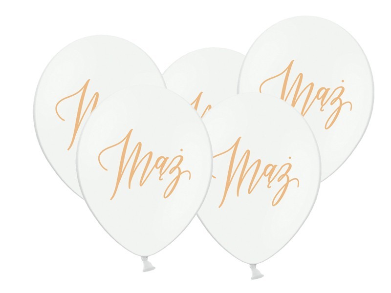 Balony Strong w kolorze Pastel Pure White ze złotym dwustronnym nadrukiem Mąż, rozmiar 12 cali (30 cm) w opakowaniu znajduje się 5 szt.
