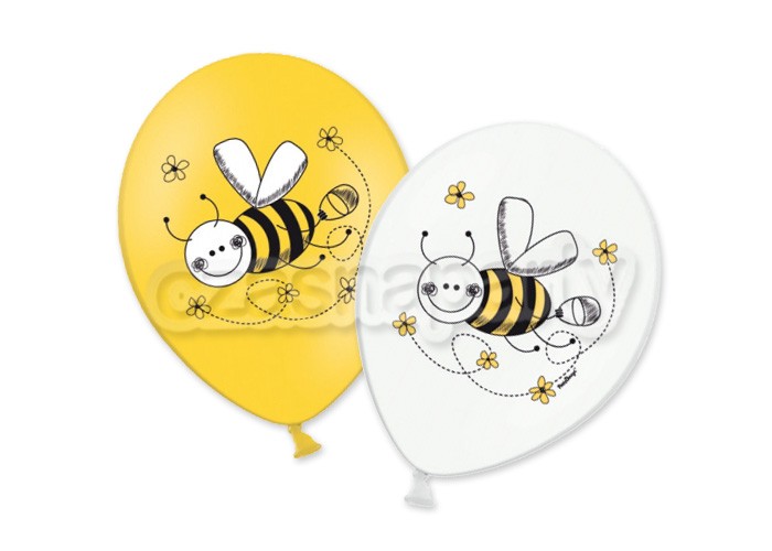Balony pastelowe z nadrukiem pszczółki. Wielkość: 14 cali (35,5 cm). Dostępne kolory: białe i żółte.