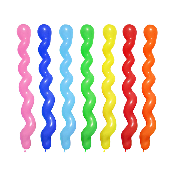 Balony do modelowania w kształcie spirali. W opakowaniu 10 szt w miksie kolorystycznym. Długość balonu ok 100 cm.