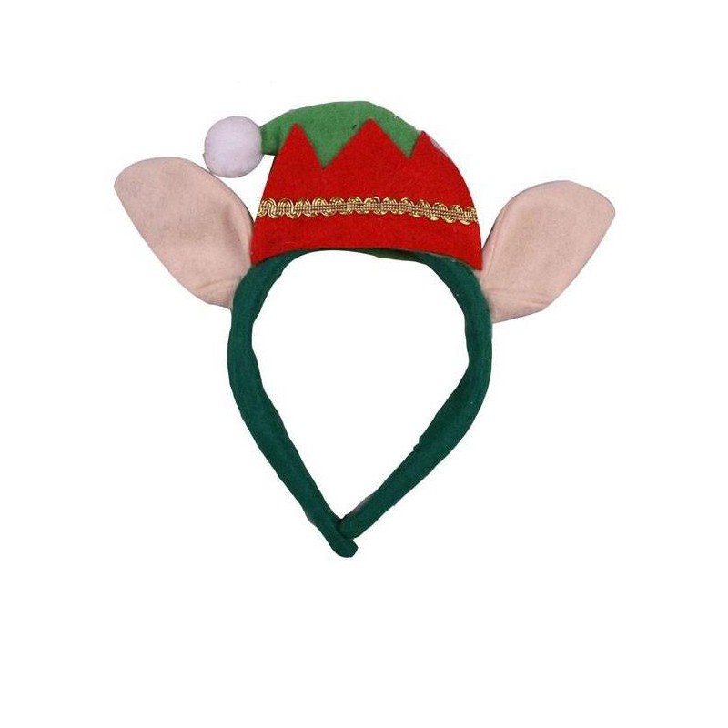 Opaska obszyta materiałem, czapka elfa z uszami i pomponem. Ozdobiona złotą taśmą, rozmiar uniwersalny.