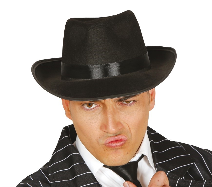 Czarny kapelusz gangstera ze wstążką na karnawał
