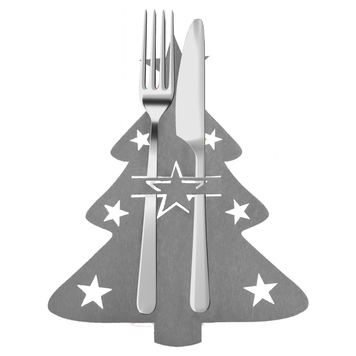 Świąteczne etui na sztućce wykonane z filcu. W opakowaniu 4 etui w kształcie choinki.