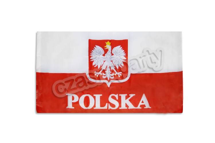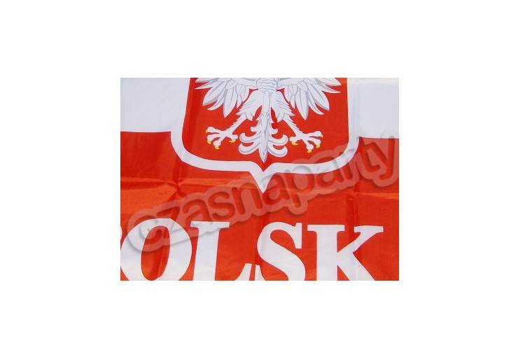 Flaga Polski z godłem. Niezbędna na każdym meczu oraz narodowej imprezie sportowej.