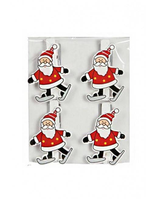 Klamerki drewniane z motywem Mikołaja.Komplet zawiera 4 klamerki. Wystarczy rozwiesić sznurek, przypiąć klamerki, a do każdej klamerki dopiąć np. kartkę którą otrzymamy na święta.