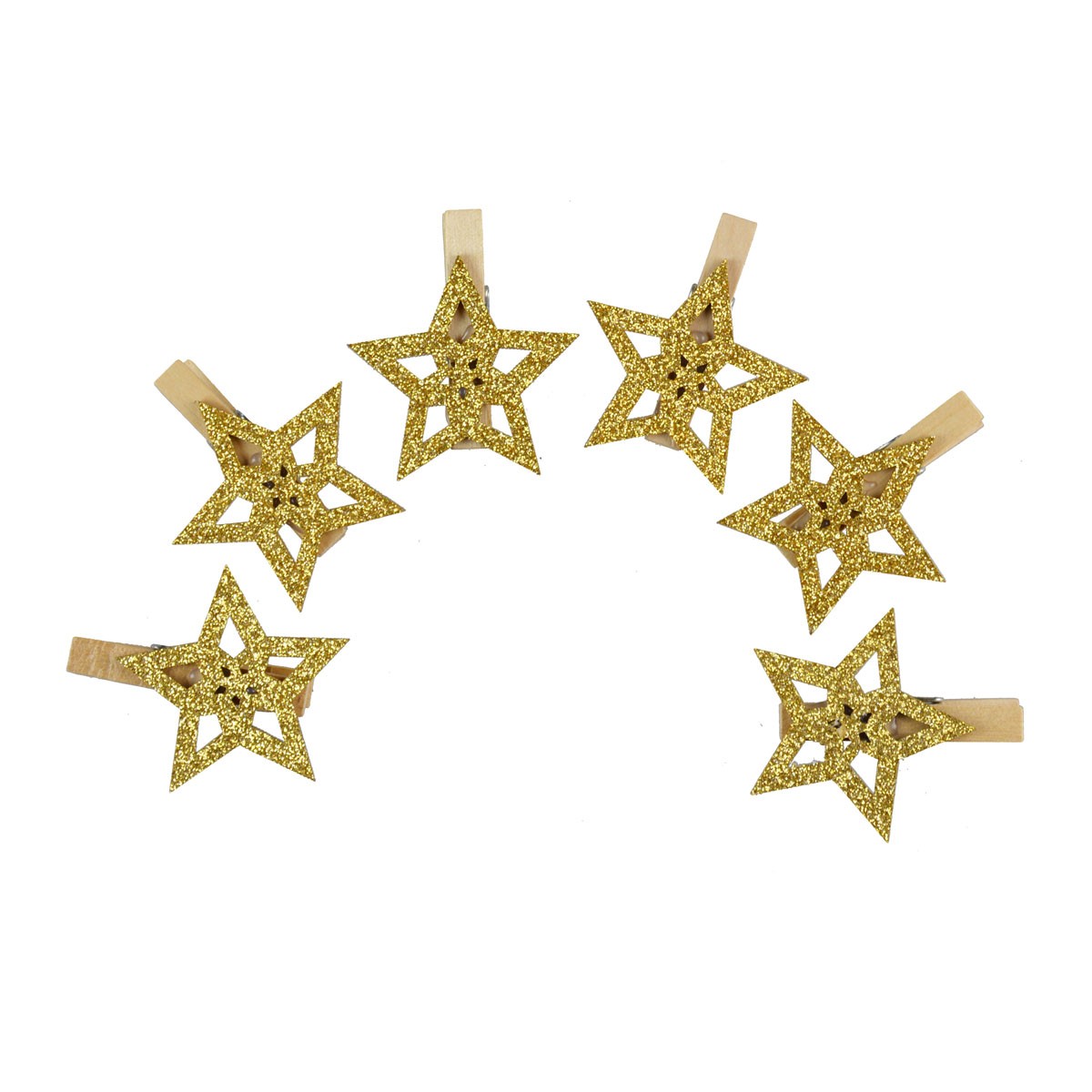 Klamerki ozdobne gwiazdki złote 6 szt.