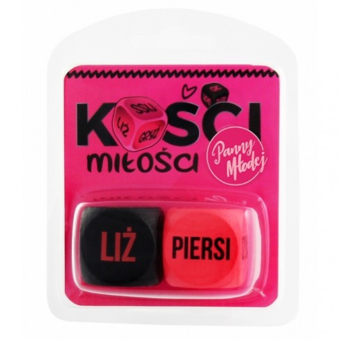 Zestaw dwóch kostek erotycznych. Na jednej znajdują się miejsca na ciele, na drugiej czynności jakie trzeba wykonać z wylosowaną częścią ciała. Kości wykonane z drewna.