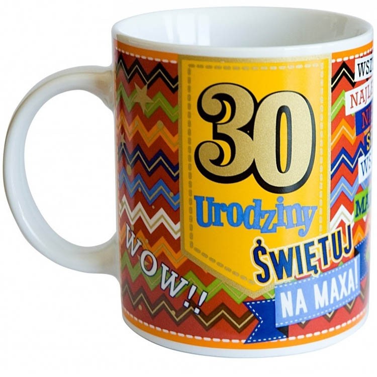 Kolorowy kubek porcelanowy Kukartka – idealny prezent na okrągłe urodziny. Złote napisy, feeria kolorów i piękny kartonik prezentowy sprawią, że taki podarunek na pewno zapadnie w pamięć. Dlaczego trzydziestka ma być serio? Zróbmy to z humorem!
