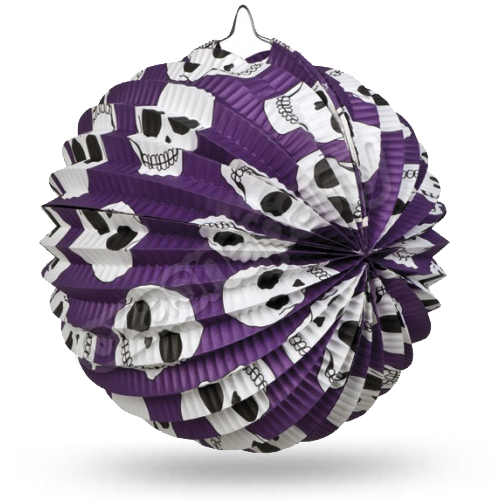 Zestaw 6 lampionów papierowych w kolorystyce czarno białej. 4 lampiony z nadrukowanymi czachami. Rozmiar lampionów: 30 cm – 1 szt., 25 cm – 1 szt., 20 cm – 2 szt., 15 cm – 2 szt. Lampiony są w wersji niezłożonej (płaskiej).