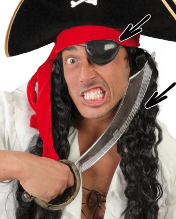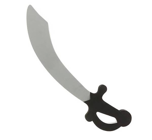 Miecz pirata wykonany z bezpiecznej pianki, w kolorze szarym z czarną rękojeścią. Długość 45 cm
