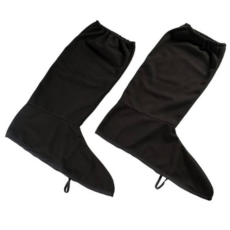 Nakładki wykonane są z czarnego weluru. Posiadają gumki zakładane pod podeszwę buta oraz gumki przytrzymujące cholewkę. Wysokość: 42 cm.