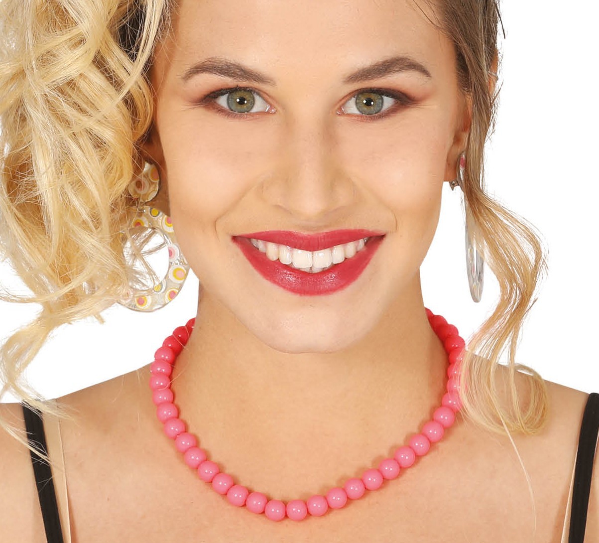 Rozmiar uniwersalny, plastikowe, różowe neonowe korale . Długość naszyjnika ok. 90cm.