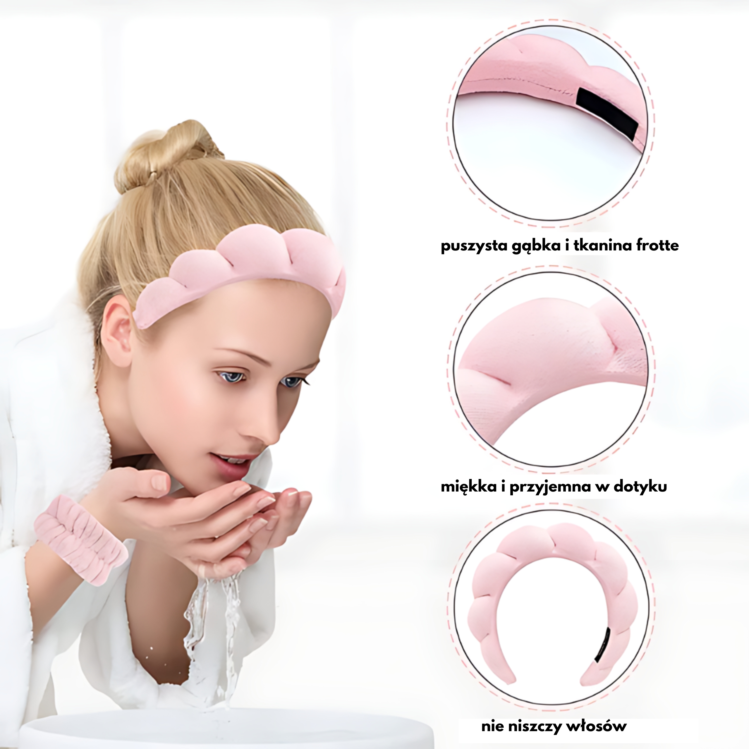 Daj się zauroczyć funkcjonalnością i stylem naszej różowej opaski z frotte – bo każda kobieta zasługuje na odrobinę luksusu w codziennej pielęgnacji.