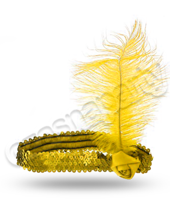 Elegancka opaska charlestone z cekinami, ozdobną różą i piórkiem.