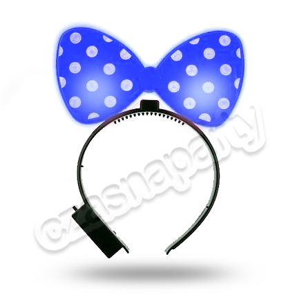 Opaska ze świecącą kokardą w kropki. W kokardzie umieszczone są świecące pulsacyjnie diody.