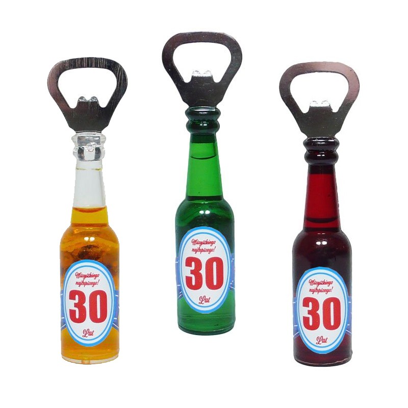 Otwieracz magnes z napisem 30 lat. Wysokość 14 cm. Wykonane z plastiku i metalu. Kolor wysyłany LOSOWO
