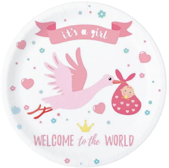 Papierowy talerz 18 cm Baby Shower Bocian 6 szt.