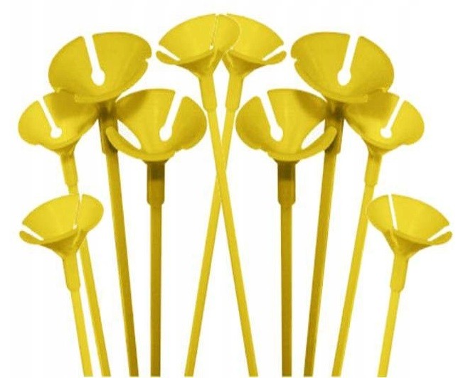 Patyczki plastikowe do balonów żółte 10 szt. Wysokość ok. 35 cm.