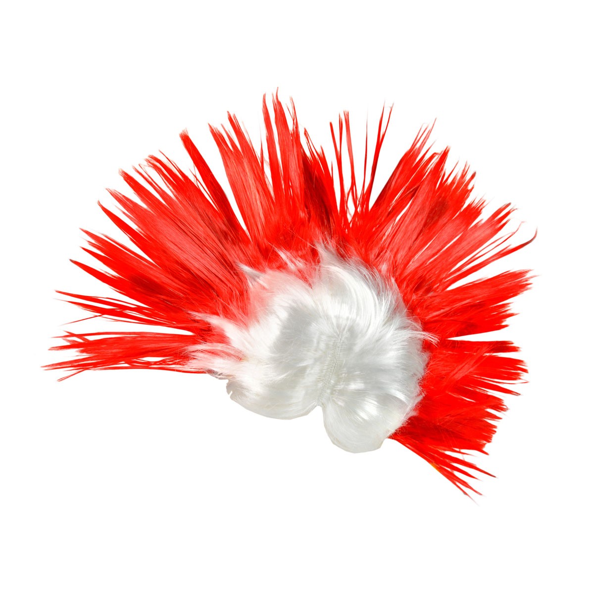Peruka irokez “Biało-Czerwoni”. 1 sztuka. Mocowana na siatce. Rozmiar uniwersalny. Idealne na sportowe imprezy czy kibicowanie w domu przed telewizorem.
