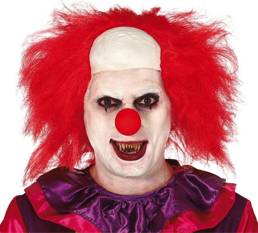 Peruka strasznego klauna. Czerwone włosy na łysinie.