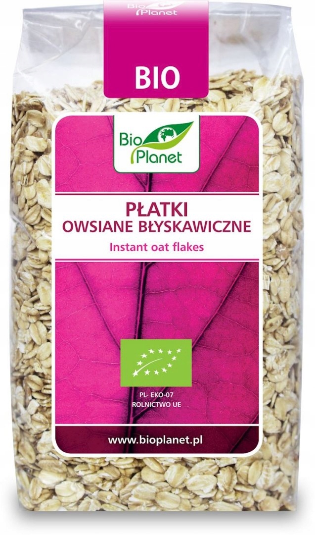 Ekologiczne płatki owsiane błyskawiczne uzyskuje się z oczyszczonych i gniecionych ziaren owsa. Płatki owsiane to doskonała propozycja na codzienne śniadanie. Najlepiej smakują z dodatkiem jogurtu, napoju zbożowego oraz z owocami.