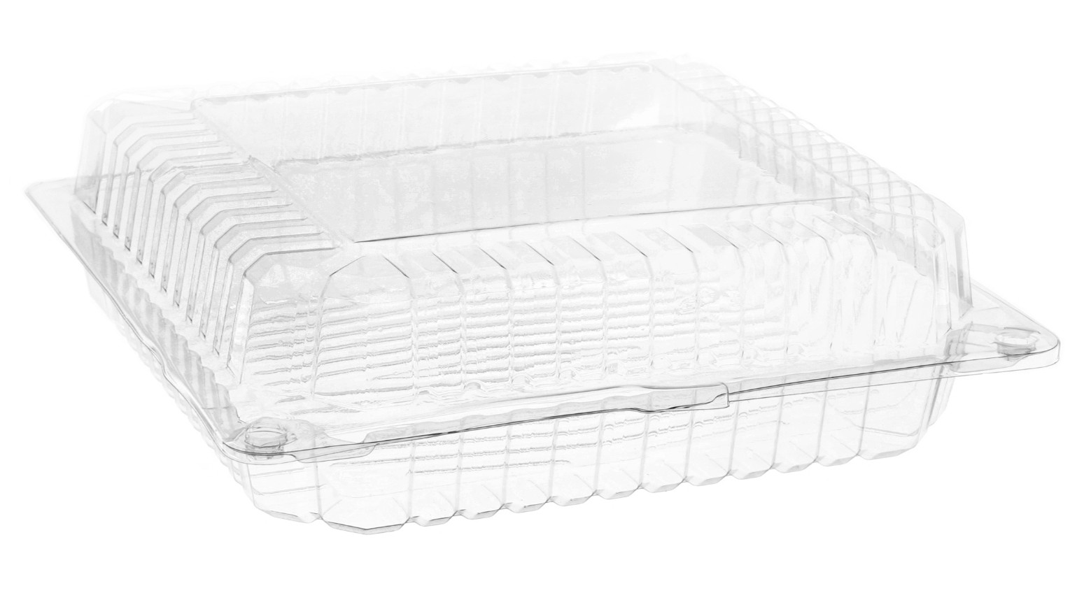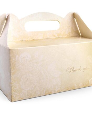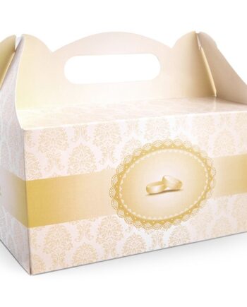 Pudełko zamykane na ciasto. Wykonane z przezroczystego plastiku. Wymiary wewnętrzne 23 x 17 x 9 cm. Doskonałe na ciasto weselne, komunijne itp. Na górną część pudełka można nakleić etykietę. Komplet zawiera 5 szt.