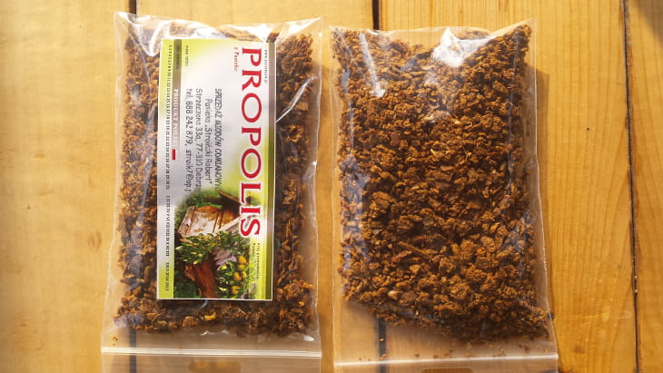 Propolis inaczej kit pszczeli to mieszanina wydzieliny z gruczołów pszczoły oraz żywicy pokrywającej pączki drzew i krzewów, która ma je chronić przed bakteriami czy grzybami. W podobnym celu kit pszczeli wykorzystują pszczoły. Pokrywają one nim wnętrze ula w celu utrzymaniu higieny i zwalczaniu chorobom. Dlatego też propolis dzięki swoim właściwościom antybakteryjnym, przeciwgrzybiczym czy też antywirusowym został nazwany naturalnym antybiotykiem oraz znalazł szerokie zastosowanie w farmaceutyce. Doskonale sprawdza się w leczeniu schorzeń skóry (czyraki, trądzik), infekcji jamy ustnej czy ból gardła. Dodatkowo przyspiesza gojenie się ran oraz skutecznie działa w kuracji poprawiającą odporność, dlatego też polecany jest przy infekcjach czy przeziębieniach.