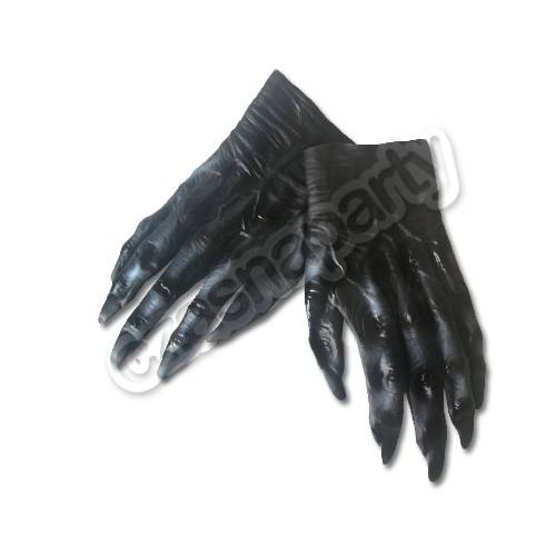 Rękawice stylu wikołaka, goryla czy potwora wykonane z grubej gumy. Długość całkowita 28 cm, szerokość dłoni ok 13,5 cm.