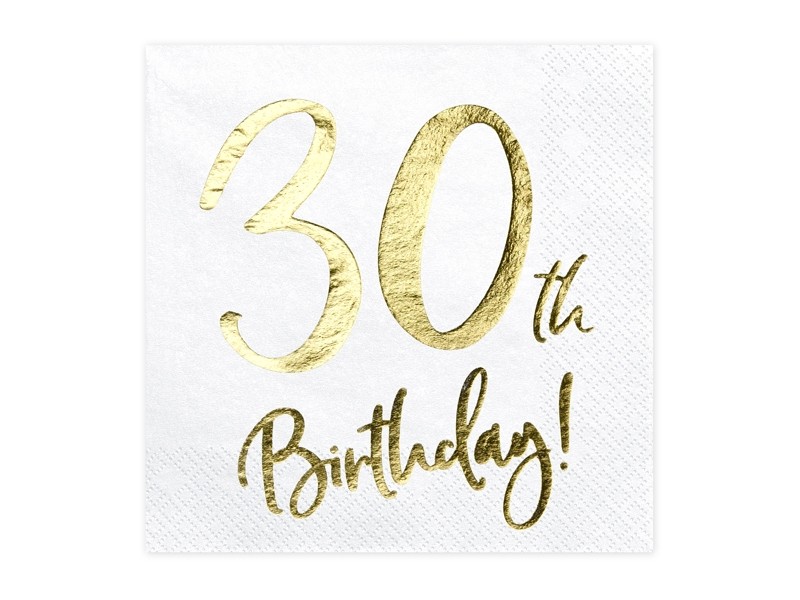 Serwetki 30th Birthday Białe Ze Złotym 33 X 33 Cm 20 Szt.