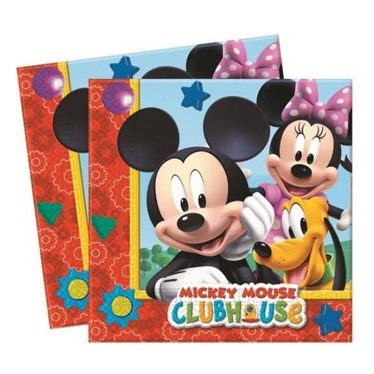 Dwuwarstwowe serwetki papierowe Mickey Mouse Clubhouse. Idealny dodatek do przyjęcia urodzinowego każdego malucha. W opakowaniu 20 szt. serwetek o wymiarze 33×33 cm.