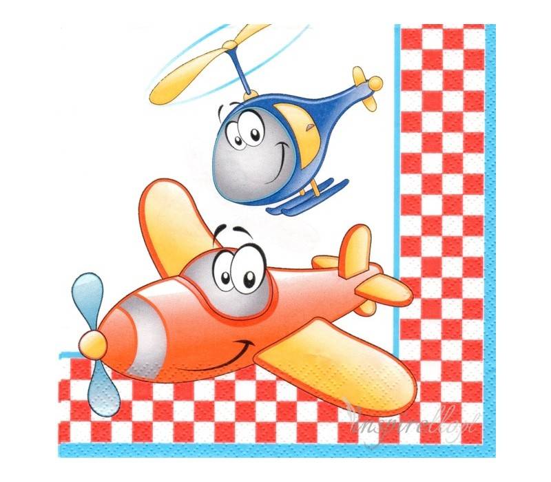 Serwetki SAMOLOTY I HELIKOPTERY, 3-warstowe, o wymiarze 33×33 cm, 20 szt. Wspaniały dodatek do przyjęcia urodzinowego każdego malucha.