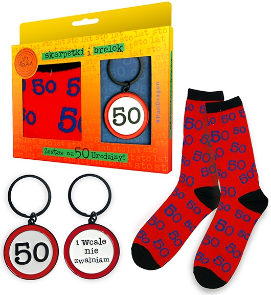 Wysokiej jakości skarpety w rozmiarze uniwersalnym oraz brelok zapakowane w ozdobny kartonik. Idealne rozwiązanie na prezent.