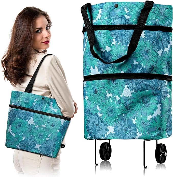 2. Kółka do łatwego przemieszczania się: Wyposażona w solidne kółka, dzięki którym torbę można łatwo ciągnąć za sobą bez potrzeby noszenia ciężkich zakupów.