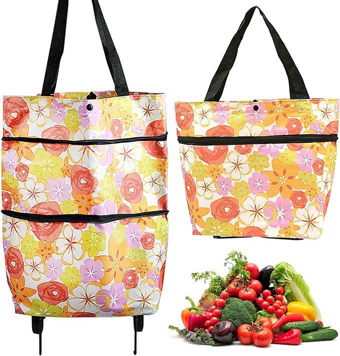 Składana Torba na Zakupy KÓŁKA Regulowana pojemność WIOSENNE KWIATY 2w1