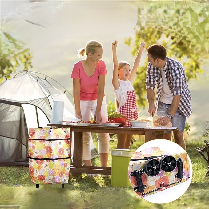 Napisz pierwszą opinię o „Składana Torba na Zakupy KÓŁKA Regulowana pojemność WIOSENNE KWIATY 2w1”
