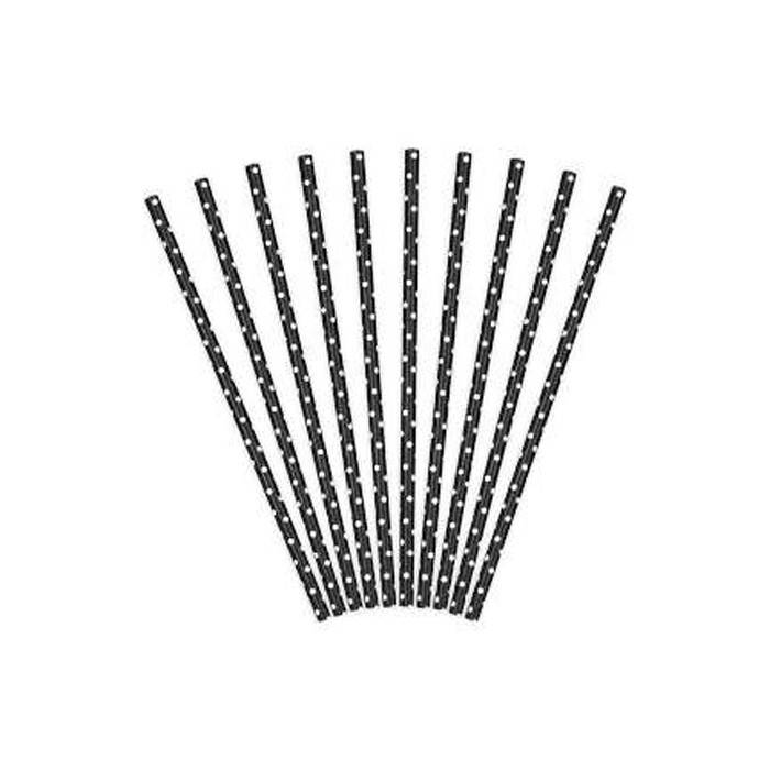 Słomki papierowe w kolorze czarno-białym z kropkami, długość około 19,5 centymetra. Opakowanie zawiera 10 sztuk.