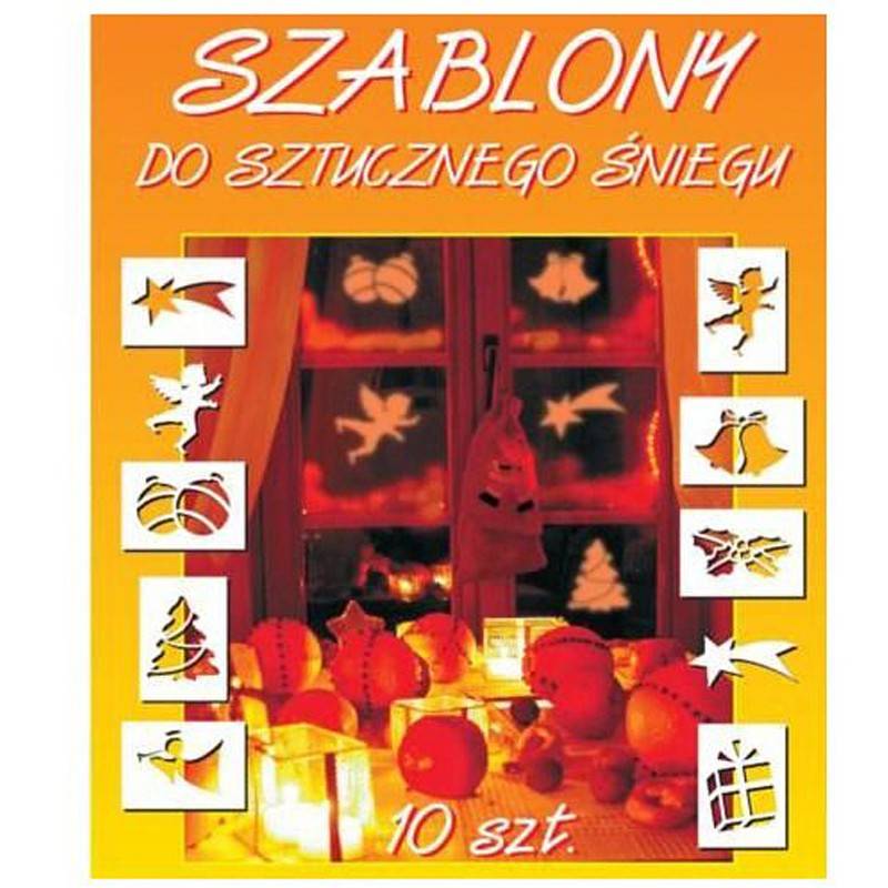Papierowe szablony do sztucznego śniegu z motywami świątecznymi. Opakowanie zawiera 8 szt. szablonów wymiaru A5 (wzory jak na zdjęciu). Szablony umożliwiają wykonanie świątecznej dekoracji na drzwiach, oknach i innych powierzchniach.