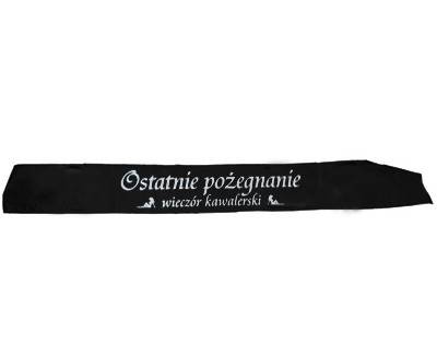 Szarfa atłasowa z nadrukiem o całkowitej długości 75 cm (obwód 150 cm) oraz szerokości 10 cm. Idealny gadżet na wieczór kawalerski.