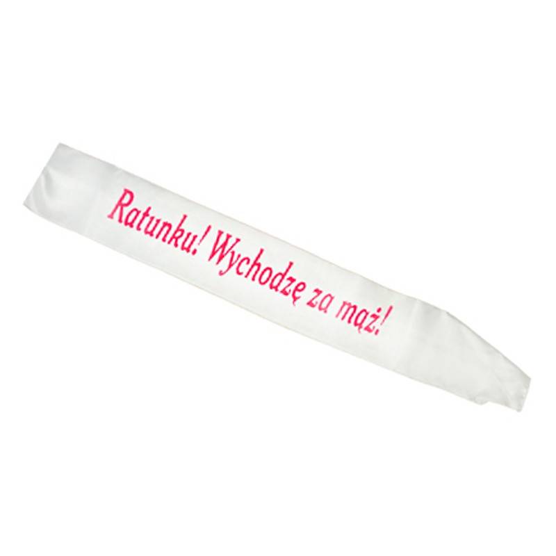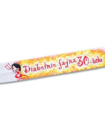 Szarfa różowa z nadrukiem o całkowitej długości 75 cm (obwód 150 cm) oraz szerokości 10 cm (w najszerszym miejscu). Idealny prezent z okazji wieczoru panieńskiego.