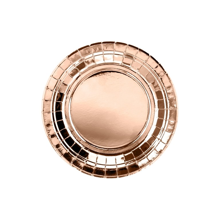 Talerzyki papierowe okrągłe w kolorze różowego złota, średnica ok. 18 cm 6 szt.