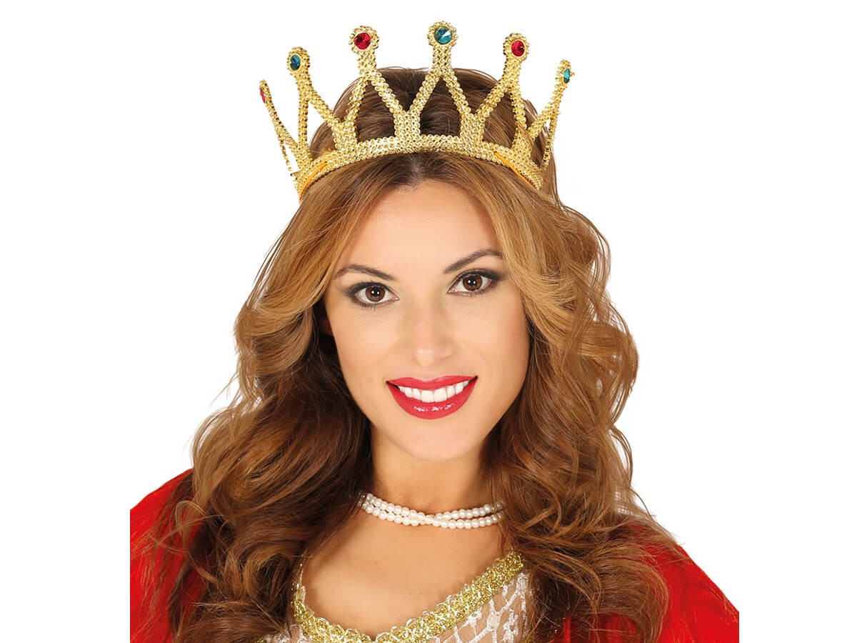 Tiara plastikowa złota, idealna jako dodatek do stroju królowej.
