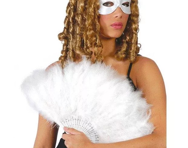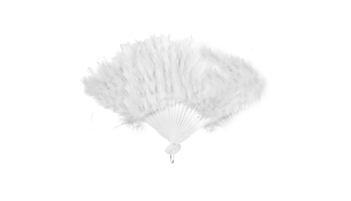 Wachlarz pokryty piórami. Wymiary wachlarza po rozłożeniu 24 x 38 cm.