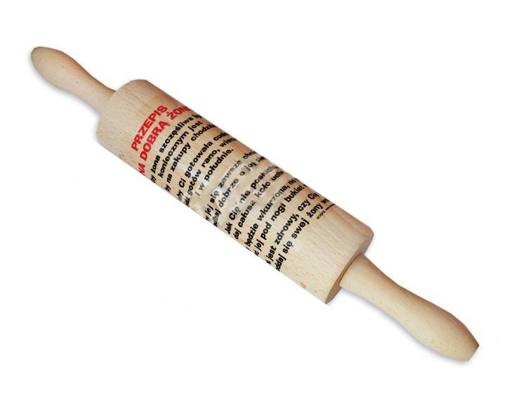 Wałek z przepisem na dobrą żonę. Wykonany z drewna.