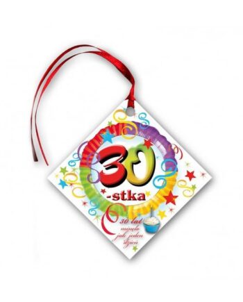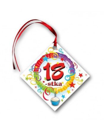 Zawieszka z urodzinowym kolorowym nadrukiem. Do zawieszenia na butelce i nie tylko. Opakowanie 20 szt.