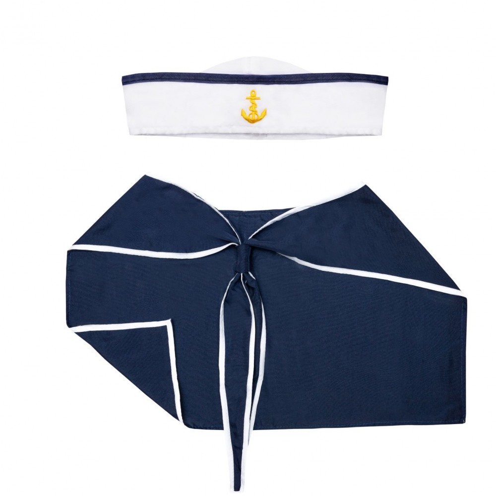 Zestaw składa się z kołnierza marynarskiego i czapki. Całość rozmiar uniwersalny.