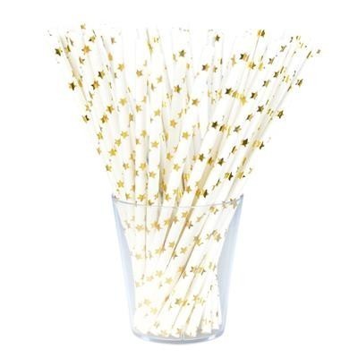 – Słomki papierowe metaliczne gwiazdki 12 szt.