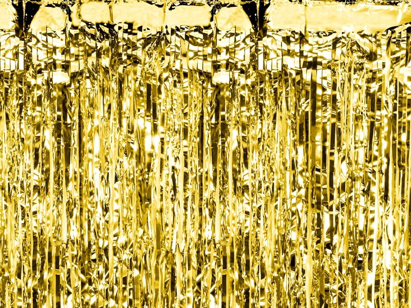 – Kurtyna Party w kolorze złotym, szerokość około 90 centymetrów, wysokość około 250 centymetrów.